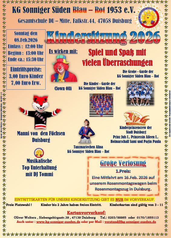 Karnevalsveranstaltungen der KG Sonniger Süden Blau - Rot 1953 e.V.
